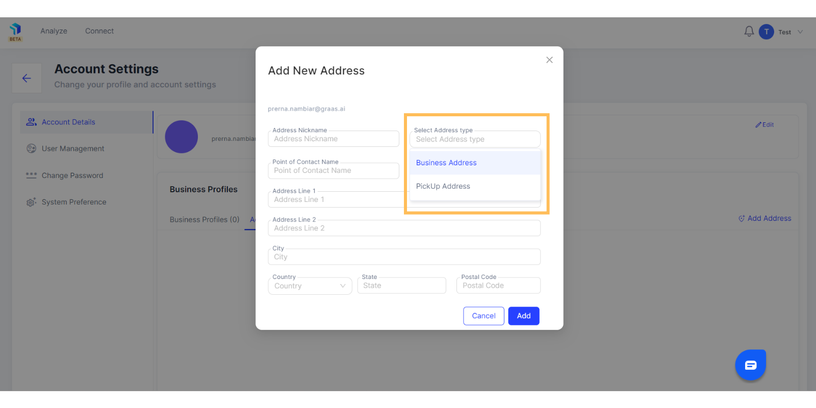 Platform Graas- Pengaturan Profil Bisnis